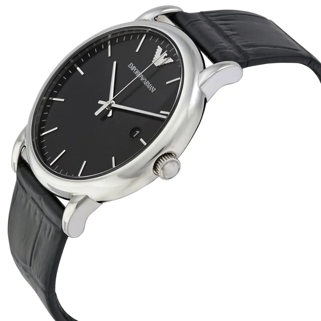 Emporio Armani Luigi Quartz Black Dial Black Leather Strap Watch For Men - AR2500