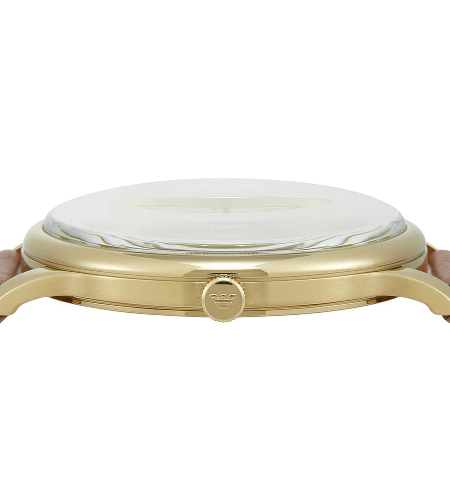 Emporio Armani Minimalist Quartz Gold Dial Brown Leather Strap Watch for Men - AR11610