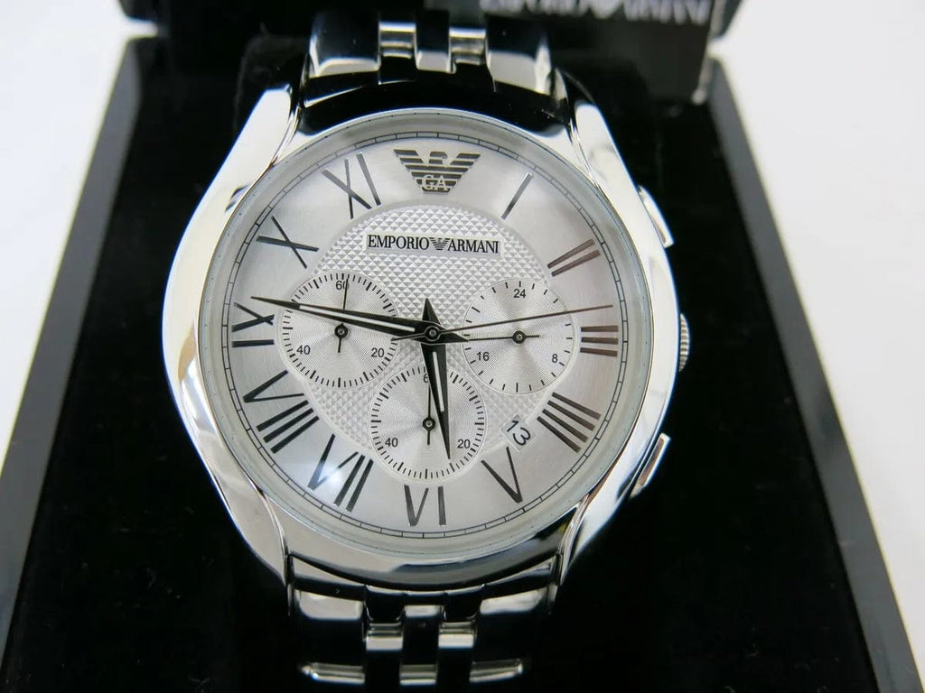 Emporio Armani Velente Chronograph Quartz Silver Dial Silver Steel Strap Watch For Men - AR1702