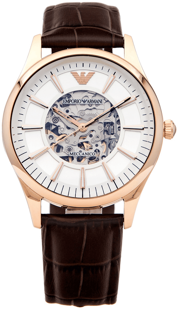 - Mens Brown Leather Strap & Rose Gold Emporio Armani Watch AR2073