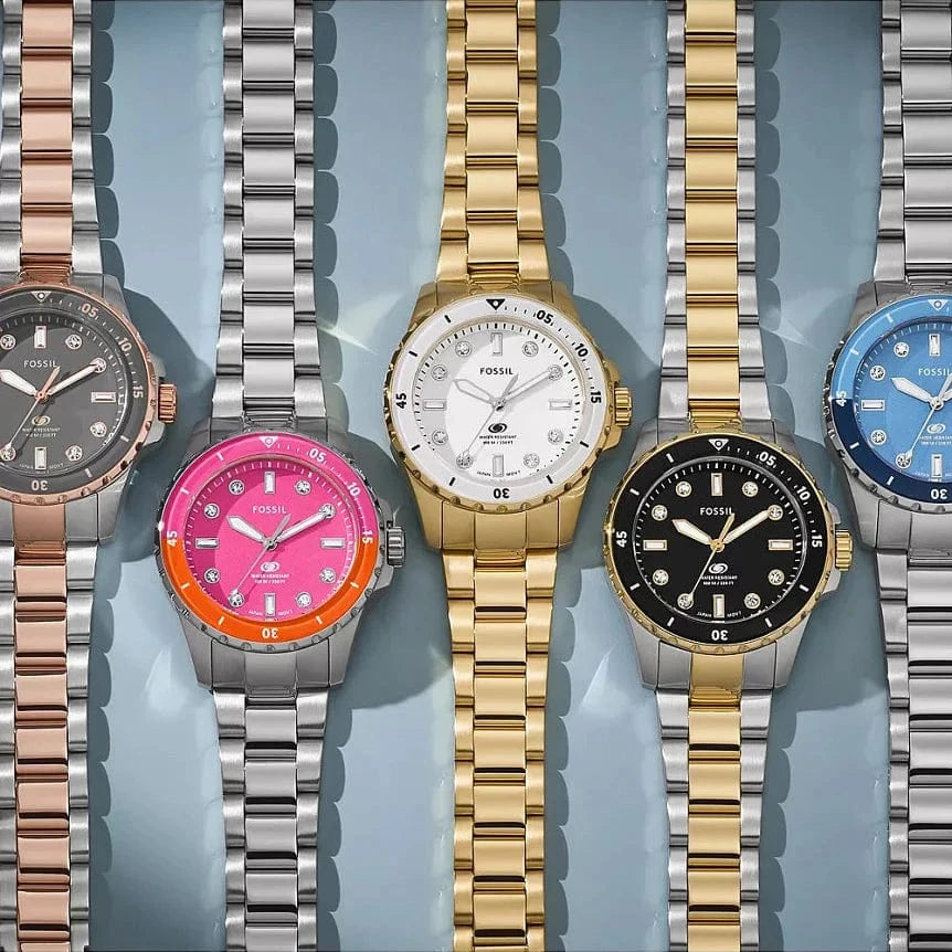 Purposeful design details define our time-honoured watch collection, Fossil Blue Dive. This stainless steel dive-style timepiece is expertly crafted with a rose gold-tone stainless steel bracelet, geometric indices and a unidirectional rotating topring. Tested to 100 meters of water resistance.