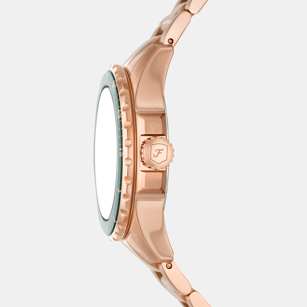 Fossil Blue Dive Three Hand Green Dial Rose Gold Steel Strap Watch For Women - ES5371