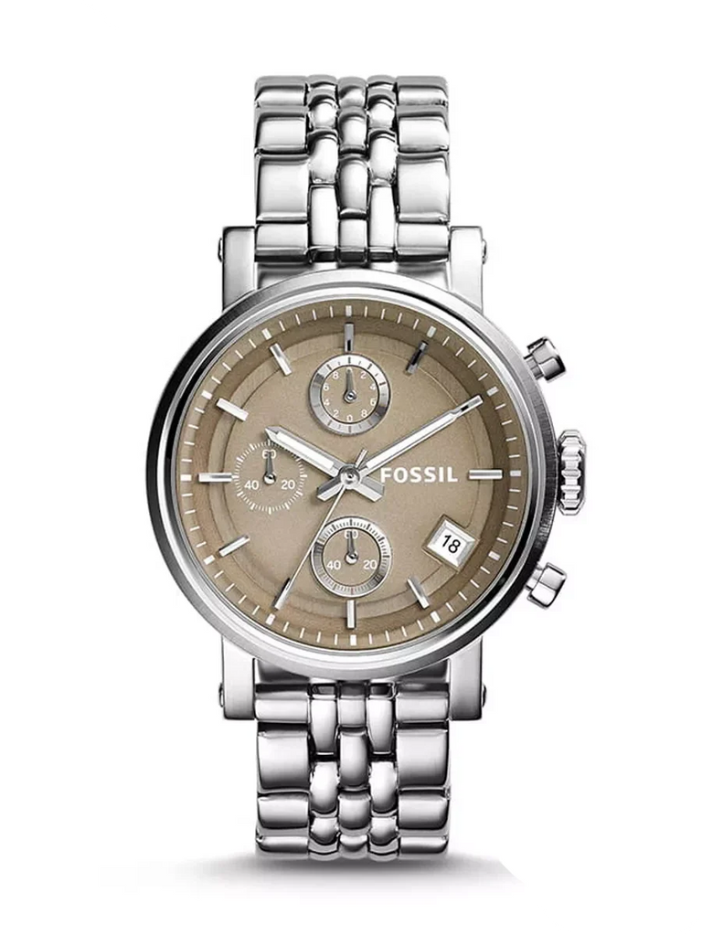 Fossil Boyfriend Chronograph Brown Dial Silver Steel Strap Watch for Women - ES3747