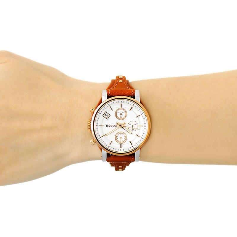 Fossil Boyfriend Chronograph White Dial Brown Leather Strap Watch for Women - ES3837