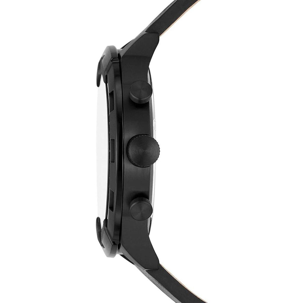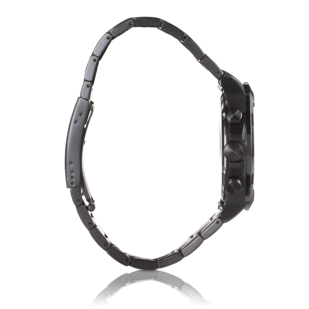- Black plated stainless steel case; black dial with date window