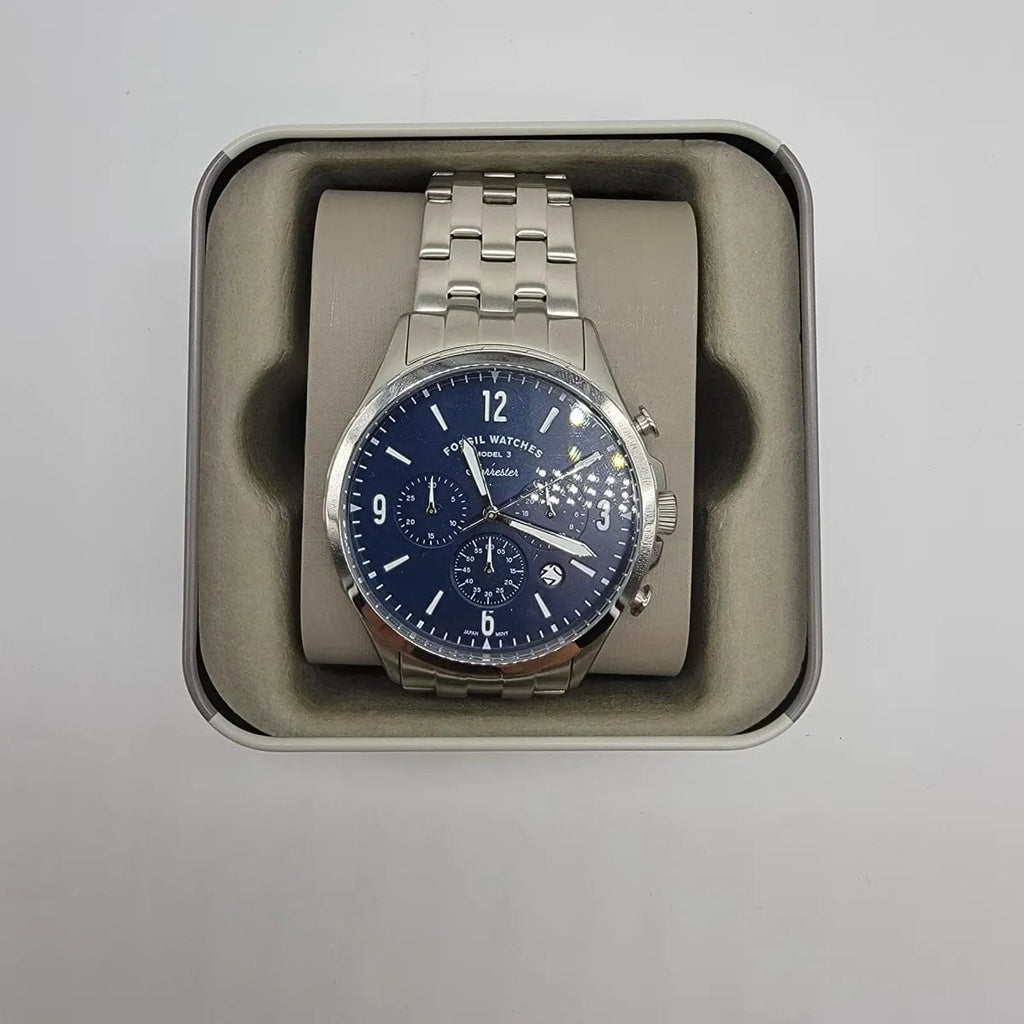 Fossil Forrester Chronograph Blue Dial Silver Steel Strap Watch for Men - FS5605