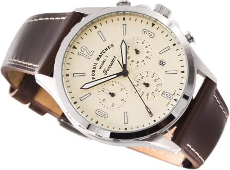Fossil FS-5696 Multi-Function Men Watch. The case is made out of silver stainless steel with a silver bezel, which stands for the high quality of the item, it has a white color. This model has got 50 meters of water resistance. it can be worn in scenarios where it is likely to be splashed but not immersed in water and will be fine in rain. The watch is shipped with an original box and a guarantee from the manufacturer.
