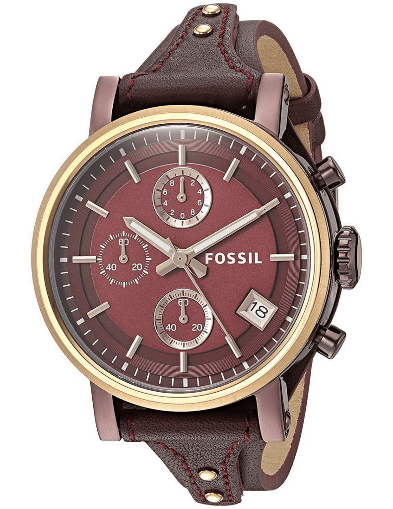 Buy Shop Fossil Original Boyfriend Sport Chronograph Maroon Dial Maroon Leather Strap Watch for Women - ES4114 USA Online