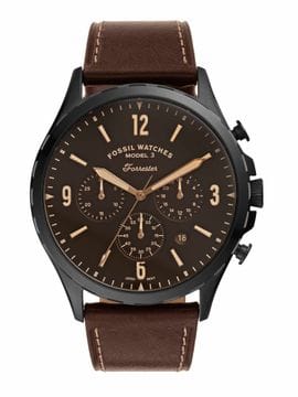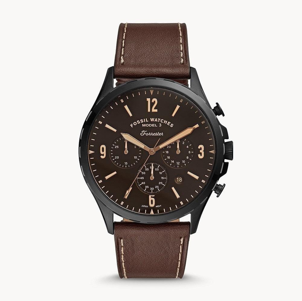 Fossil Forrester Chronograph Black Dial Brown Leather Strap Watch for Men - FS5608