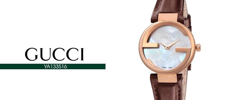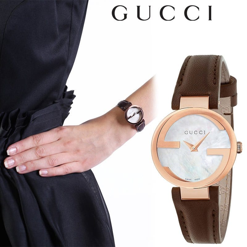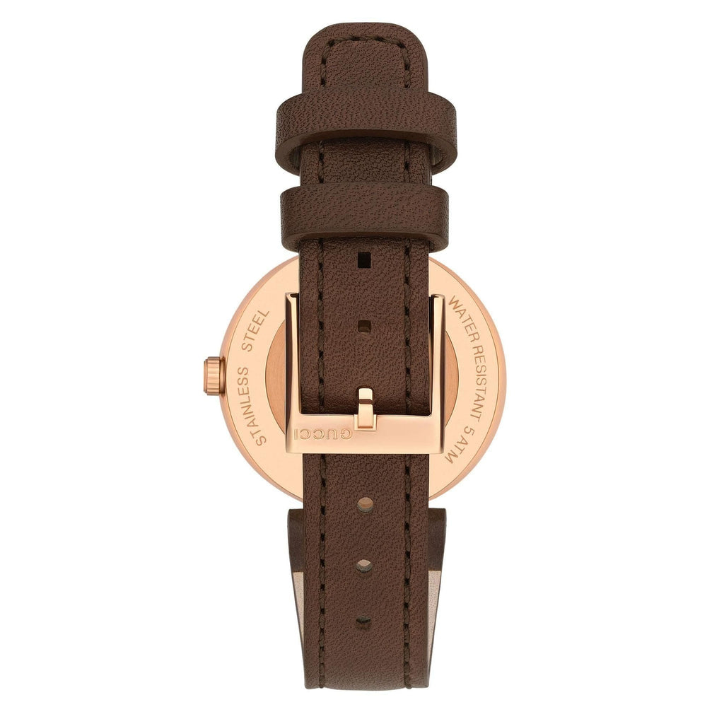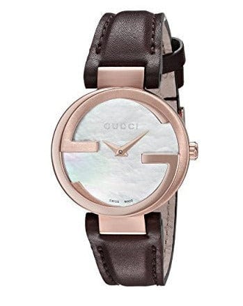 Buy Shop Gucci G Interlocking Mother of Pearl Dial Brown Leather Strap Watch For Women - YA133516 USA Online