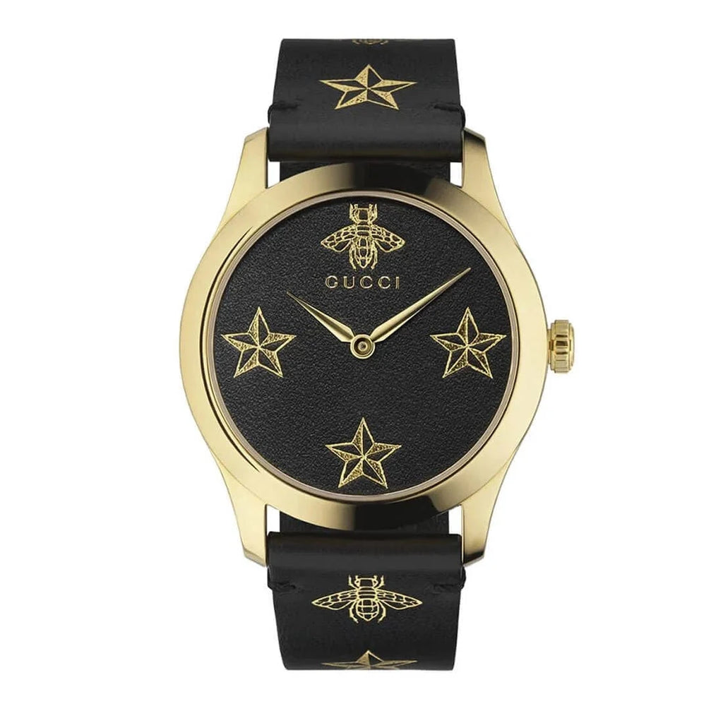 Gucci G Timeless Bee Motif Black Dial Black Leather Strap Watch For Women - YA1264055