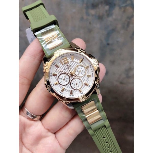 Guess Interpid 2 Golden Dial Two Tone Silicon Strap Watch For Women - W0325L5
