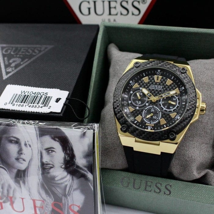 Guess Legacy Black Dial Black Rubber Strap Watch for Men - W1049G5