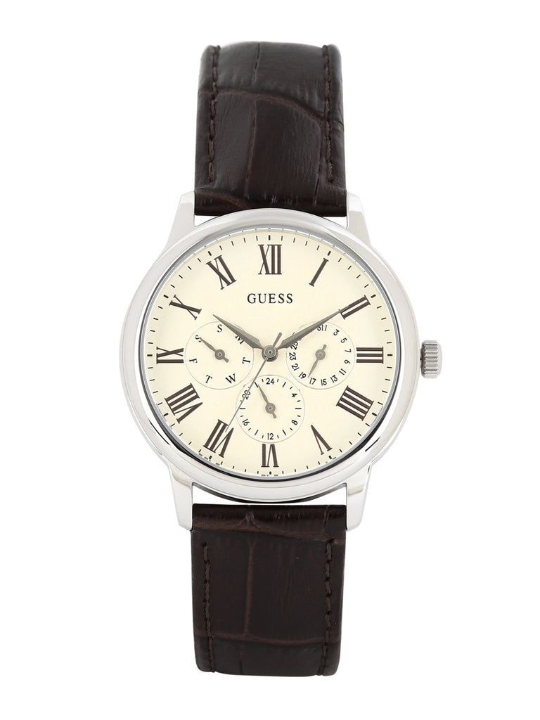 Guess Wafer Quartz White Dial Brown Leather Strap Watch For Men - W70016G2