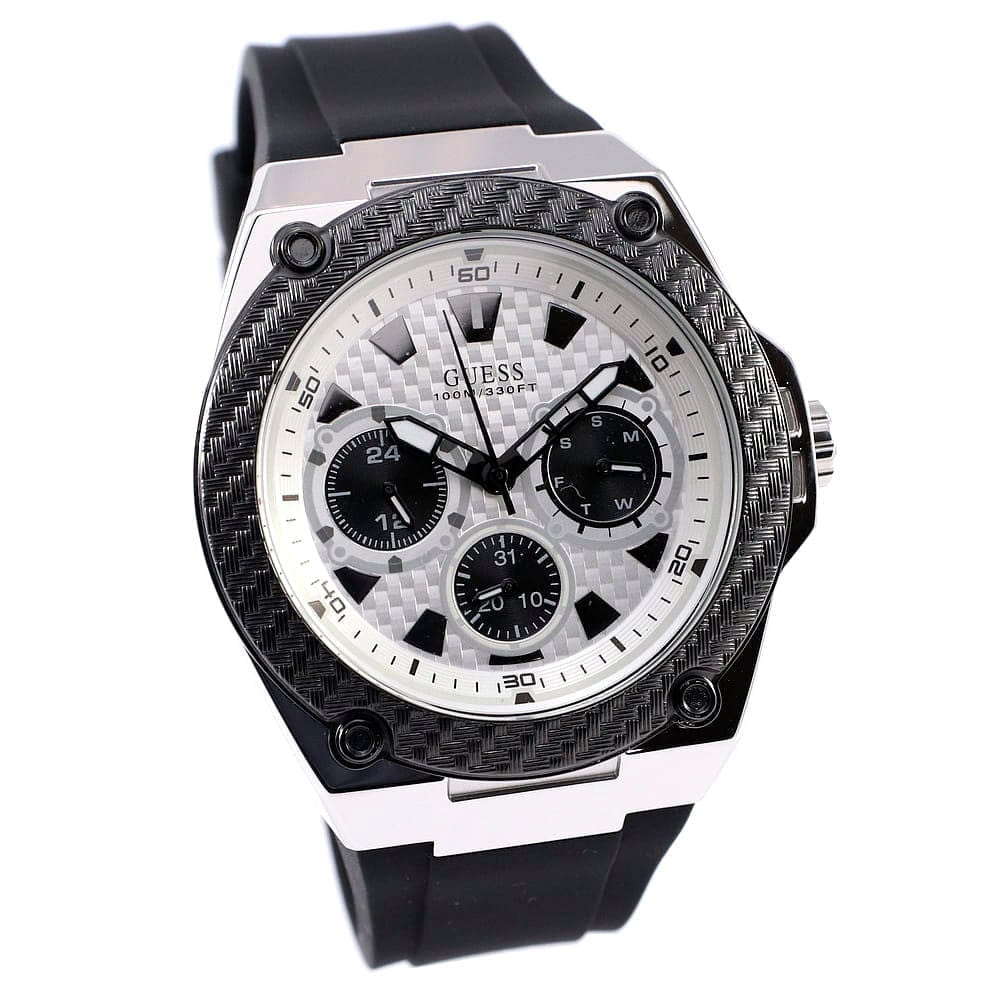Guess Legacy White Dial Black Rubber Strap Watch For Men - W1049G3