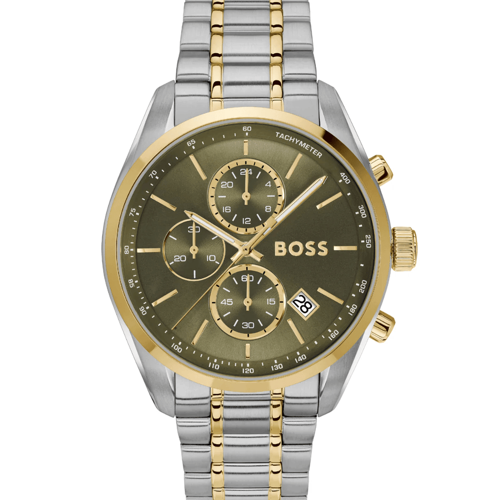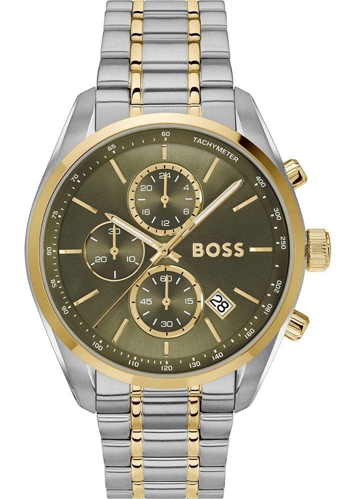 Hugo Boss Grand Prix Chronograph Green Dial Two Tone Steel Strap Watch for Men - 1514227