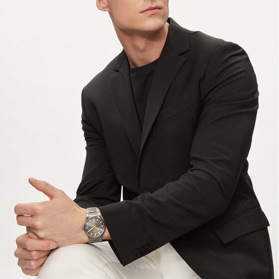 The Hugo Boss Candor 1514079 watch epitomizes modern sophistication with a touch of sporty elegance. Its dark grey stainless-steel case, bezel, and bracelet create a sleek and durable foundation. The dark grey dial adorned with white and rose gold accents offers a refined contrast, enhancing both readability and aesthetic appeal. Powered by precise quartz movement, it ensures accurate timekeeping, complemented by a practical date display feature.