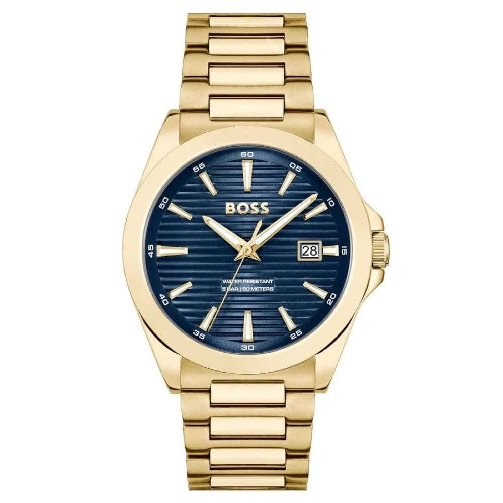 Hugo Boss Strike Blue Dial Gold Steel Strap Watch for Men - 1514172