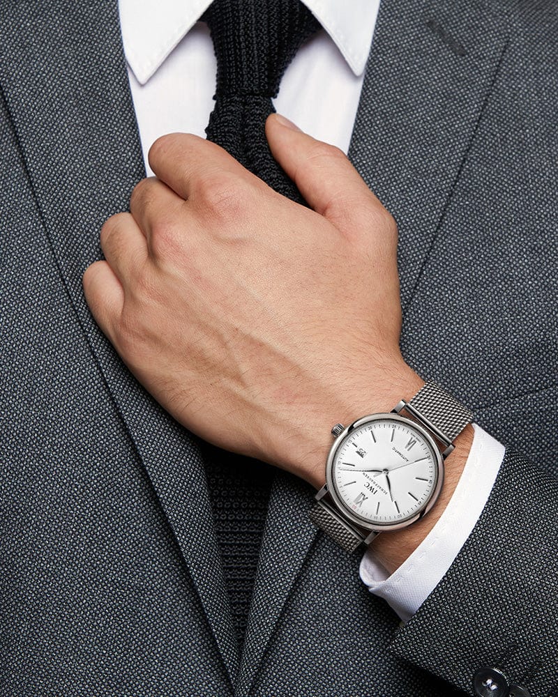 IWC Portofino Automatic White Dial Silver Mesh Bracelet Watch for Men - IW356505