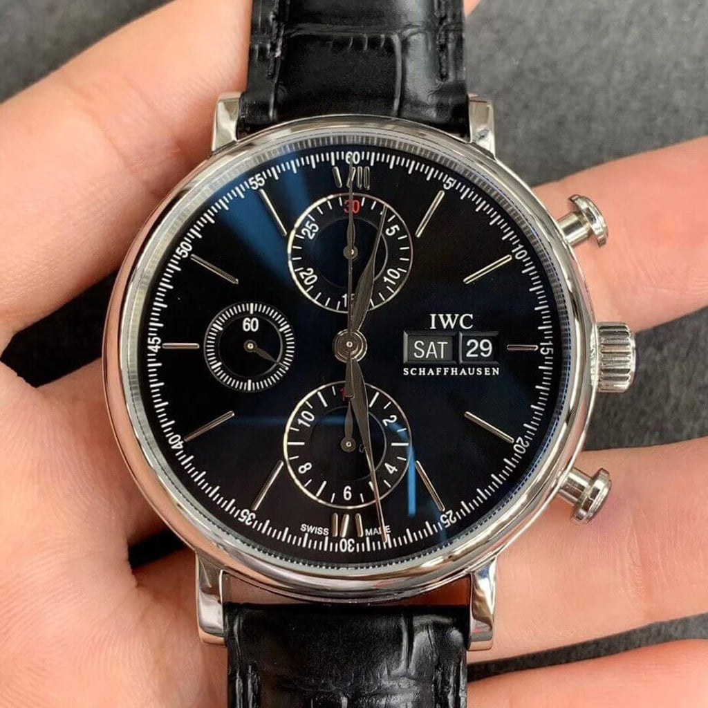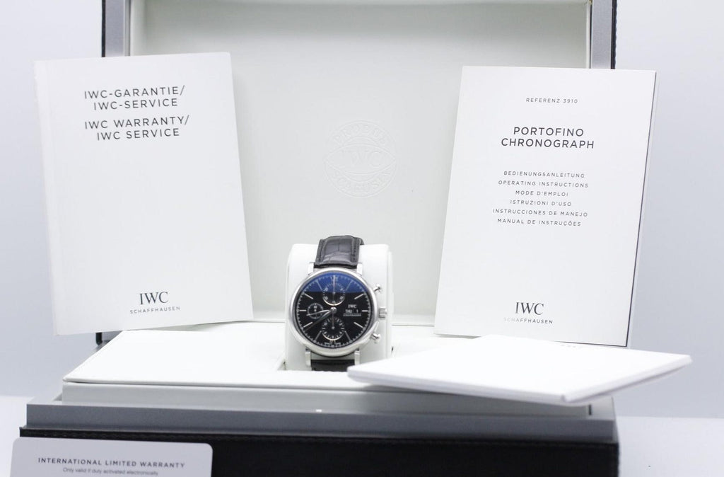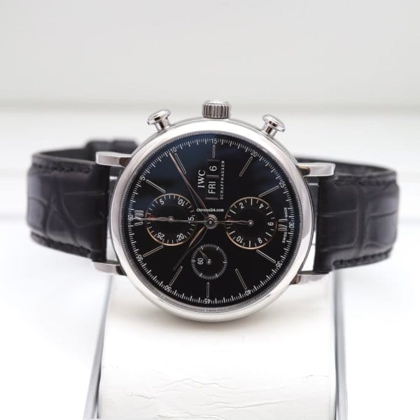 IWC Portofino Chronograph Black Dial Black Leather Strap Watch for Men - IW391008