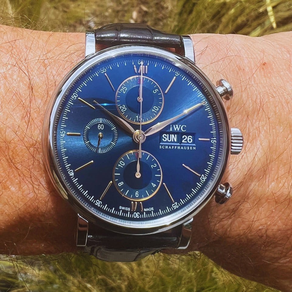 Description: 42mm- Stainless steel case, Automatic, self-winding, Diameter 42.0 mm, Black alligator leather strap, Strap width 20.0 mm. Made in Switzerland.