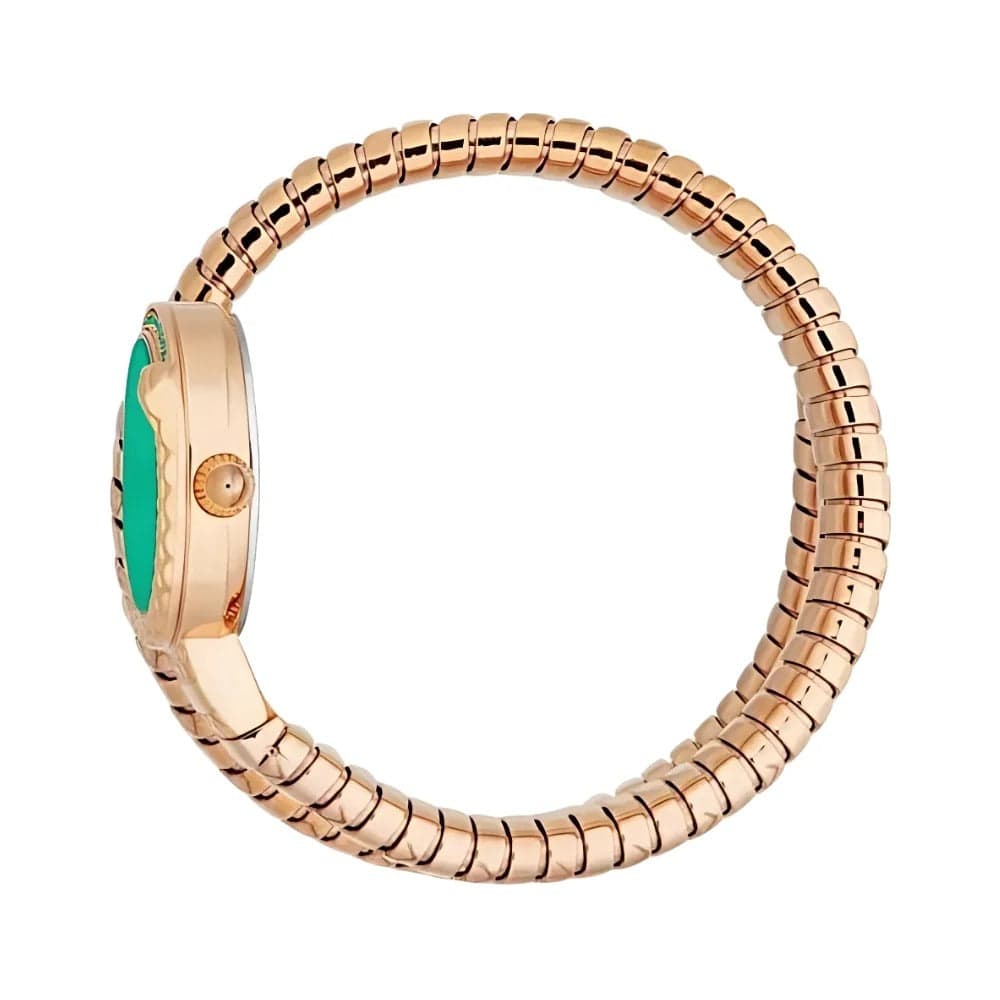 Elevate your style with the Just Cavalli Enchanting watch, featuring a striking green dial and rose gold steel strap. Designed for women who appreciate bold elegance, this timepiece combines luxury and durability effortlessly. Its unique snake-inspired design adds a captivating edge, making it perfect for both everyday wear and special occasions. Make a confident statement with this exquisite blend of fashion and function.