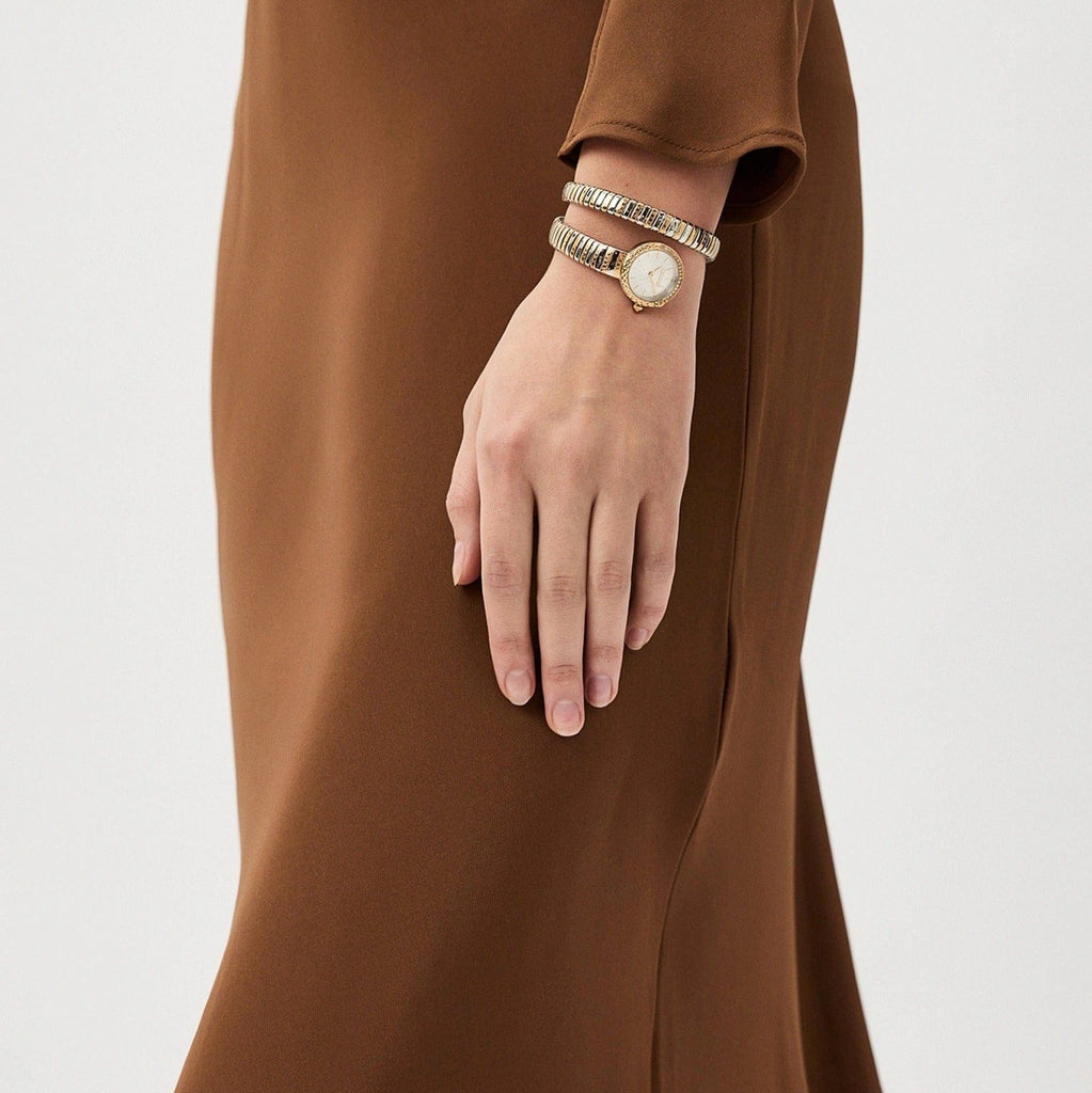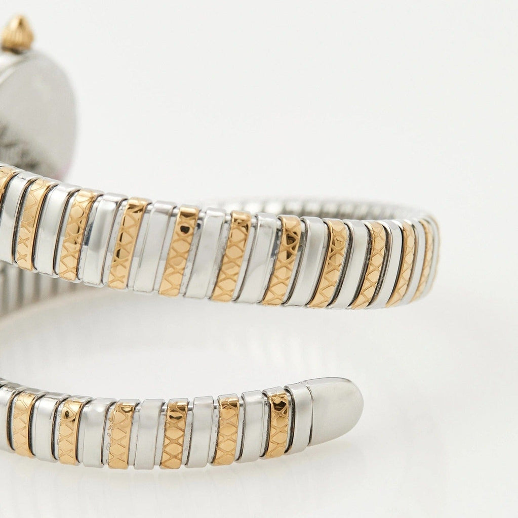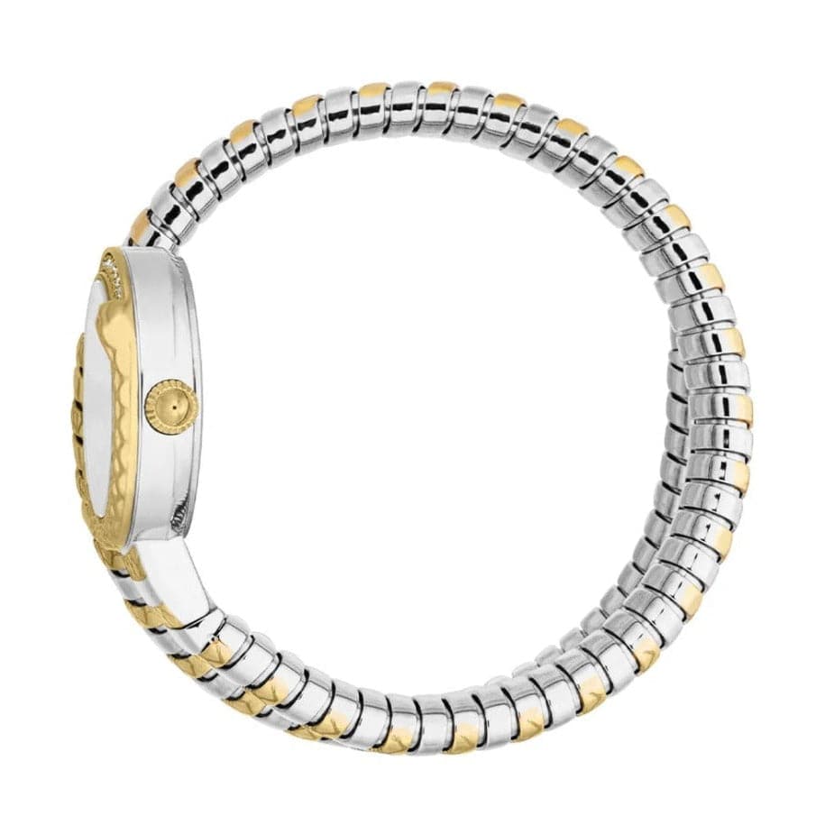 Elevate your style with the Just Cavalli Enchanting watch, featuring a striking silver dial paired with a two-tone steel strap. Designed for women who appreciate bold elegance, this timepiece blends sophisticated detail with everyday durability. Its unique snake motif adds a distinctive touch, making it perfect for both casual and formal occasions. Experience timeless fashion that complements your personality and keeps you punctual with effortless charm.