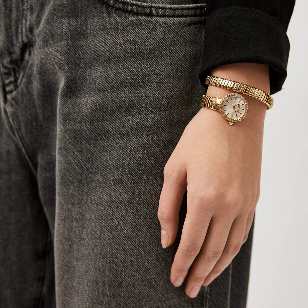 Elevate your style with the Just Cavalli Enchanting watch, featuring a striking white dial and a luxurious gold steel strap. Designed for women who appreciate elegance and bold design, this timepiece combines fashion-forward aesthetics with reliable craftsmanship. The distinctive snake motif adds a unique touch, making it perfect for any occasion where you want to stand out with confidence and sophistication.