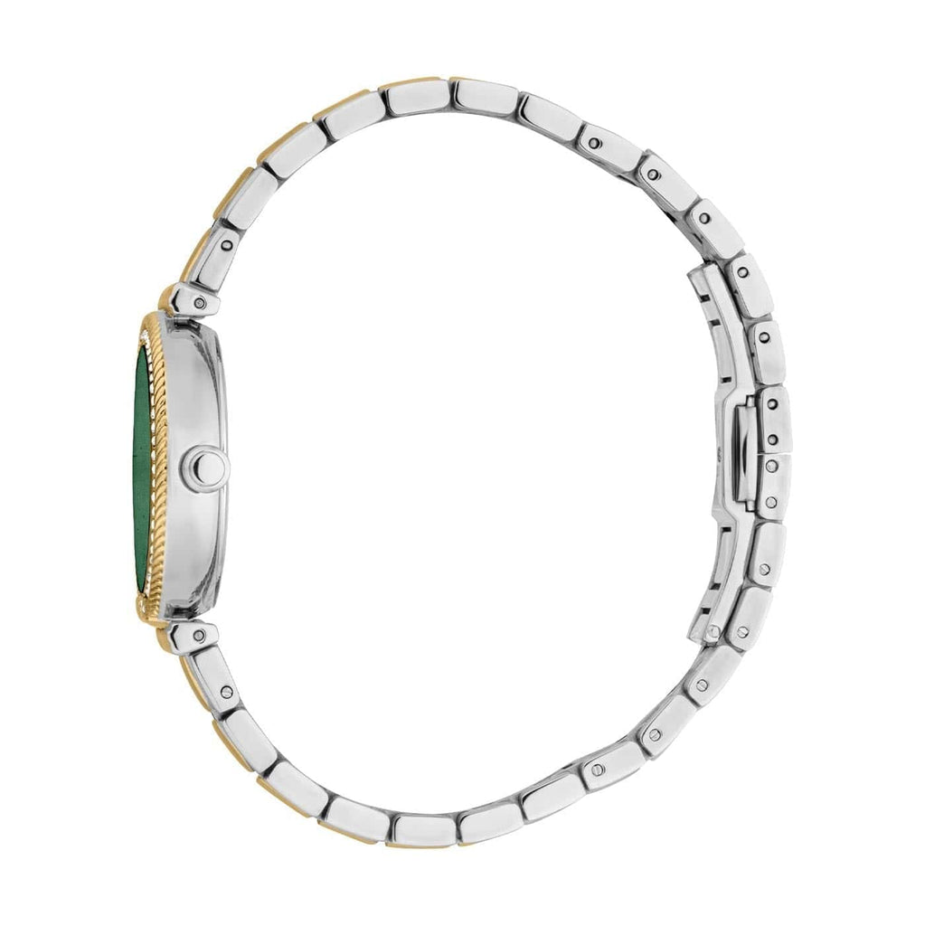 Elevate your style with the Just Cavalli Chiarezza Snake Core watch. Featuring a striking green dial and a sophisticated two-tone steel strap, this timepiece blends elegance with bold design. Perfect for women who want a statement accessory that combines fashion and functionality effortlessly. Add a touch of luxury to every outfit with this eye-catching watch.