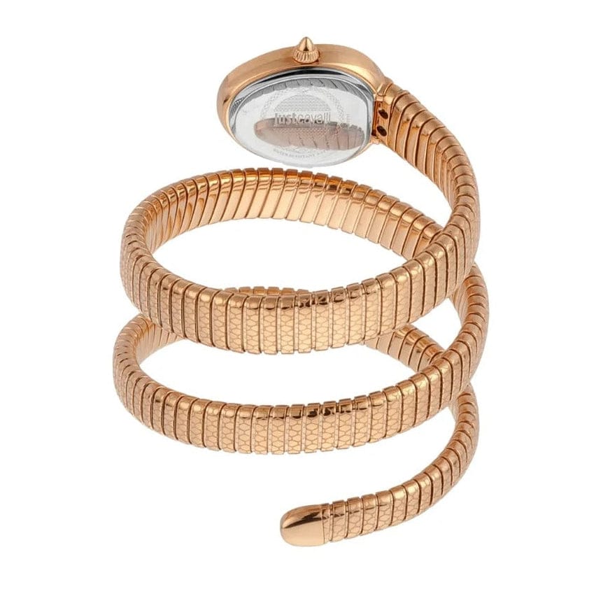 Elevate your style with the Just Cavalli Signature Snake Rose Gold Dial Ladies Watch. This stunning watch is not just a timepiece, but a statement piece. The sleek Rose Gold dial and signature snake design add a touch of luxury to any outfit. Make a bold and confident statement with this watch on your wrist.