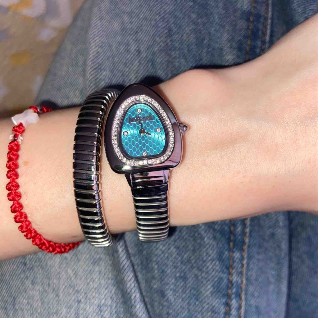- Discover timeless elegance with the Just Cavalli JC1L249 - the finishing touch for women. Silver stainless steel meets bold turquoise, refined by the iconic snake signature.