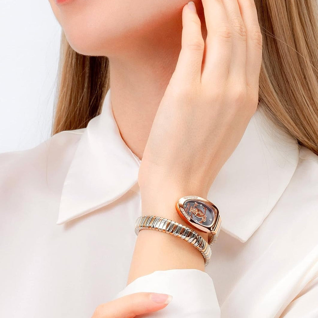 - The Just Cavalli Serpente logo watch is an elegant and bold watch that stands out on the wrist. With a snake design on the dial, this watch is perfect for anyone looking to add a touch of class to their wardrobe. Thanks to the waterproof construction, you don't have to worry about damage when you are on the go, whether rain or splash.