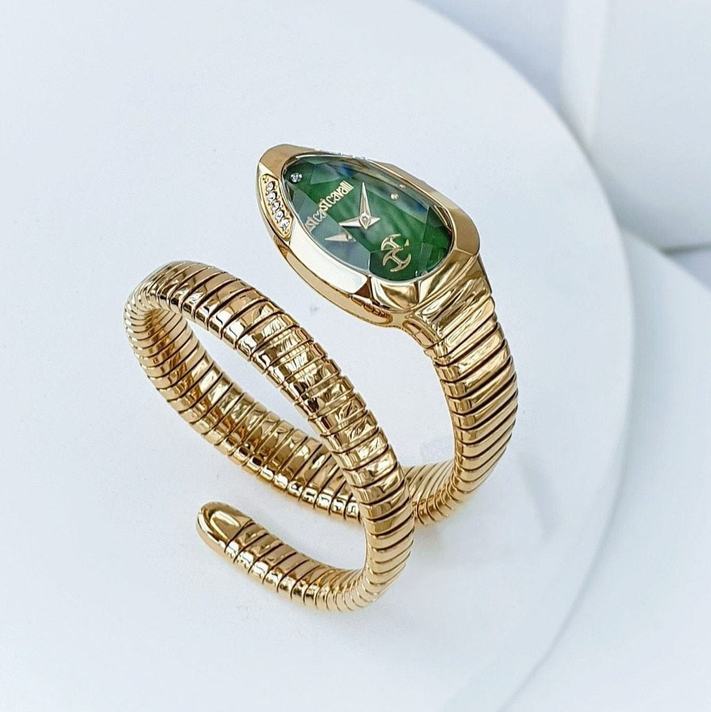 Elevate your style with the Just Cavalli Serpente Metallica watch, featuring a striking green dial paired with a rose gold steel strap. Designed for women who appreciate bold elegance, this timepiece combines unique color contrast and durable materials for everyday wear. Its distinctive look ensures you stand out, while the quality craftsmanship guarantees lasting performance. Perfect for adding a touch of luxury to any outfit, this watch blends fashion and function seamlessly.