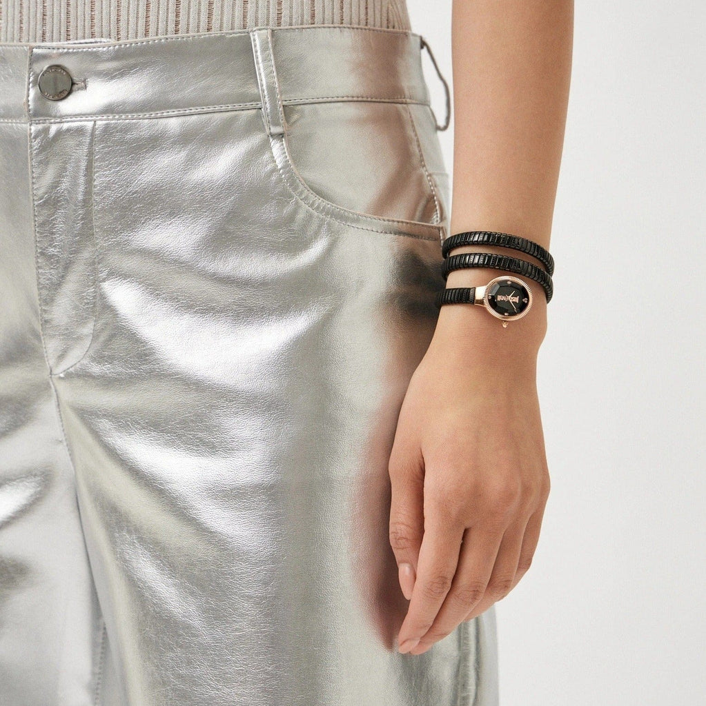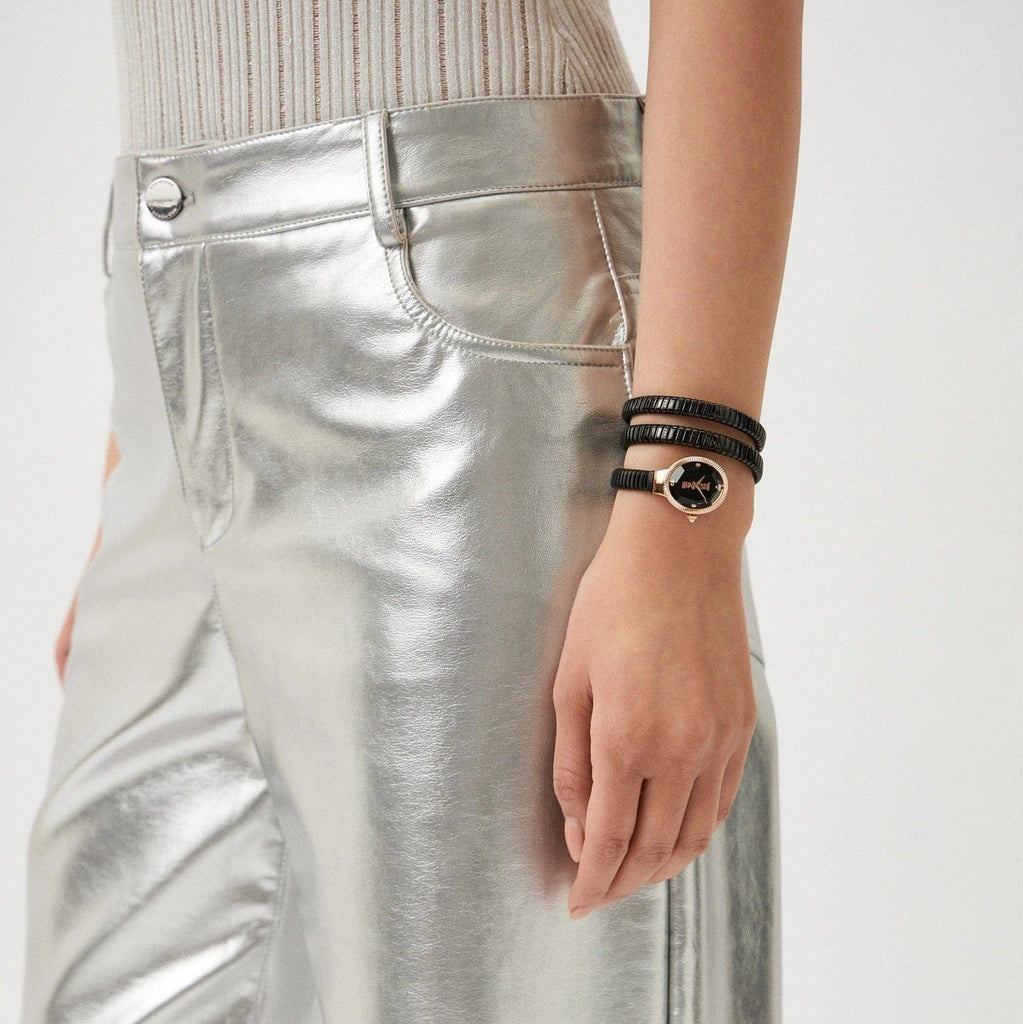 Elevate your wrist with the Just Cavalli Snake Black Dial Black Steel Strap Watch, where Italian sophistication meets bold design. This striking timepiece features a captivating black dial paired with a sleek black steel bracelet, creating an effortlessly chic look that transitions seamlessly from day to night. The snake motif adds an edgy, fashion-forward touch that sets it apart from ordinary watches. Crafted with precision and style, this women's watch is the perfect accessory for those who refuse to compromise on elegance or attitude. Make a statement with every glance at your wrist.