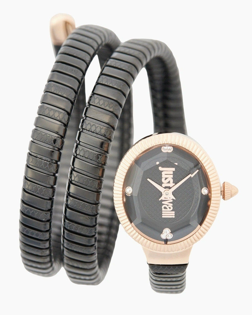Just Cavalli Snake Black Dial Black Steel Strap Watch for Women - JC1L269M0075