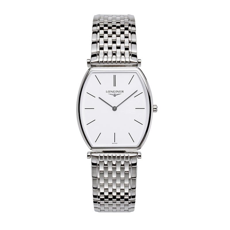 The slim stainless steel case of this Longines La Grand Classique Ladies watch comes to only 5mm thick and yet still manages to house a Swiss quartz movement celebrated for its unbeatable precision. Housed beneath the scratch resistant sapphire crystal glass is a crisp white matte dial that is beautifully decorated with painted indices and sleek steel hands. To fasten this gorgeous timepiece to your wrist, a luxurious stainless steel bracelet is added alongside a folding style clasp.