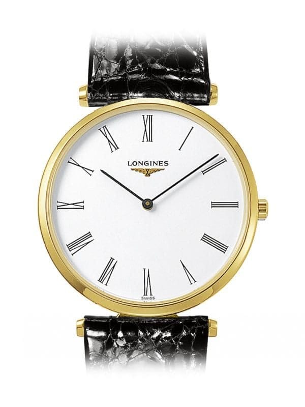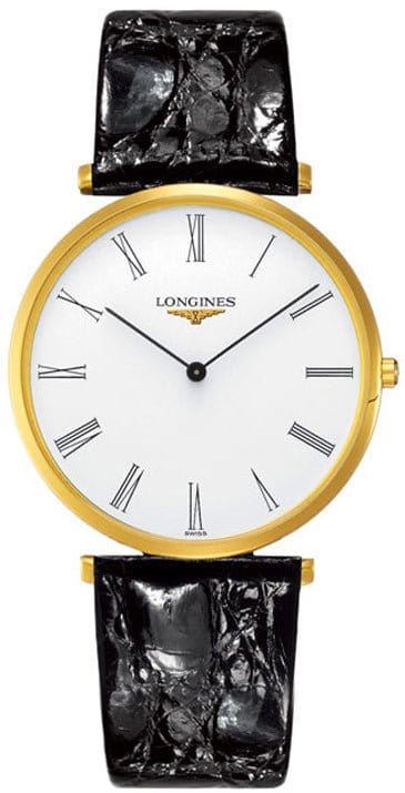 Longines La Grande Classique 36 mm watch. Model reference: L4.755.2.11.2. 18K yellow gold PVD coating case. White dial. Quartz movement. Black alligator leather strap and pin buckle. This Longines watch comes in original packaging with set of documents and 5 years warranty