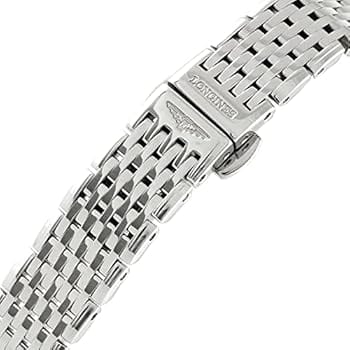 Stainless steel case with a stainless steel bracelet. Fixed stainless steel bezel. Mother of pearl dial with steel hands and diamond hour markers. Dial Type: Analog. Quartz movement. Scratch resistant synthetic sapphire crystal. Pull / push crown. Pressure fitted solid case back. Case diameter: 24.5 mm. Case thickness: 5 mm. Round case shape. Band width: 17.8 mm. Band length: 7 inches. Deployment clasp. Water resistant at 30 meters / 100 feet. Functions: hours, minutes. Casual watch style. Watch label: Swiss. Longines La Grande Classique Mother of Pearl Dial Stainless Steel Ladies Watch L4.209.4.87.6.