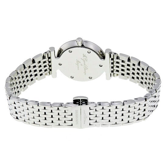 Stainless steel case with a stainless steel bracelet. Fixed stainless steel bezel. Mother of pearl dial with black hands and Roman numeral hour markers. Dial Type: Analog. Longines calibre L209 quartz movement. Scratch resistant sapphire crystal. Pull / push crown. Solid case back. Round case shape. Case size: 24 mm. Case thickness: 5 mm. Band width: 16 mm. Fold over clasp with a push button release. Water resistant at 30 meters / 100 feet. Functions: hour, minute. La Grande Classique Series. Casual watch style. Watch label: Swiss. Item Variations: L4 209 4 71 6, L4-209-4-71-6, L4/209/4/71/6, L42094716. Longines La Grande Classique Ladies Watch L4.209.4.71.6.
