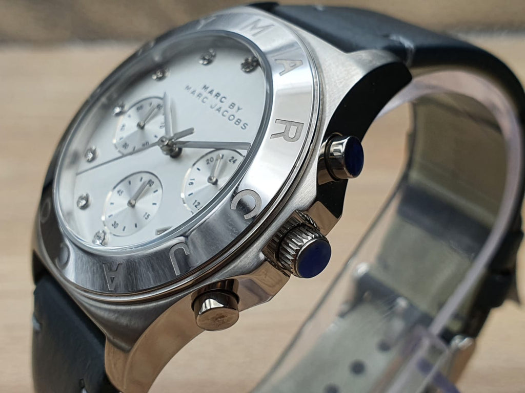 Marc Jacobs Blade Chronograph White Dial Black Leather Strap Watch for Women - MBM1189