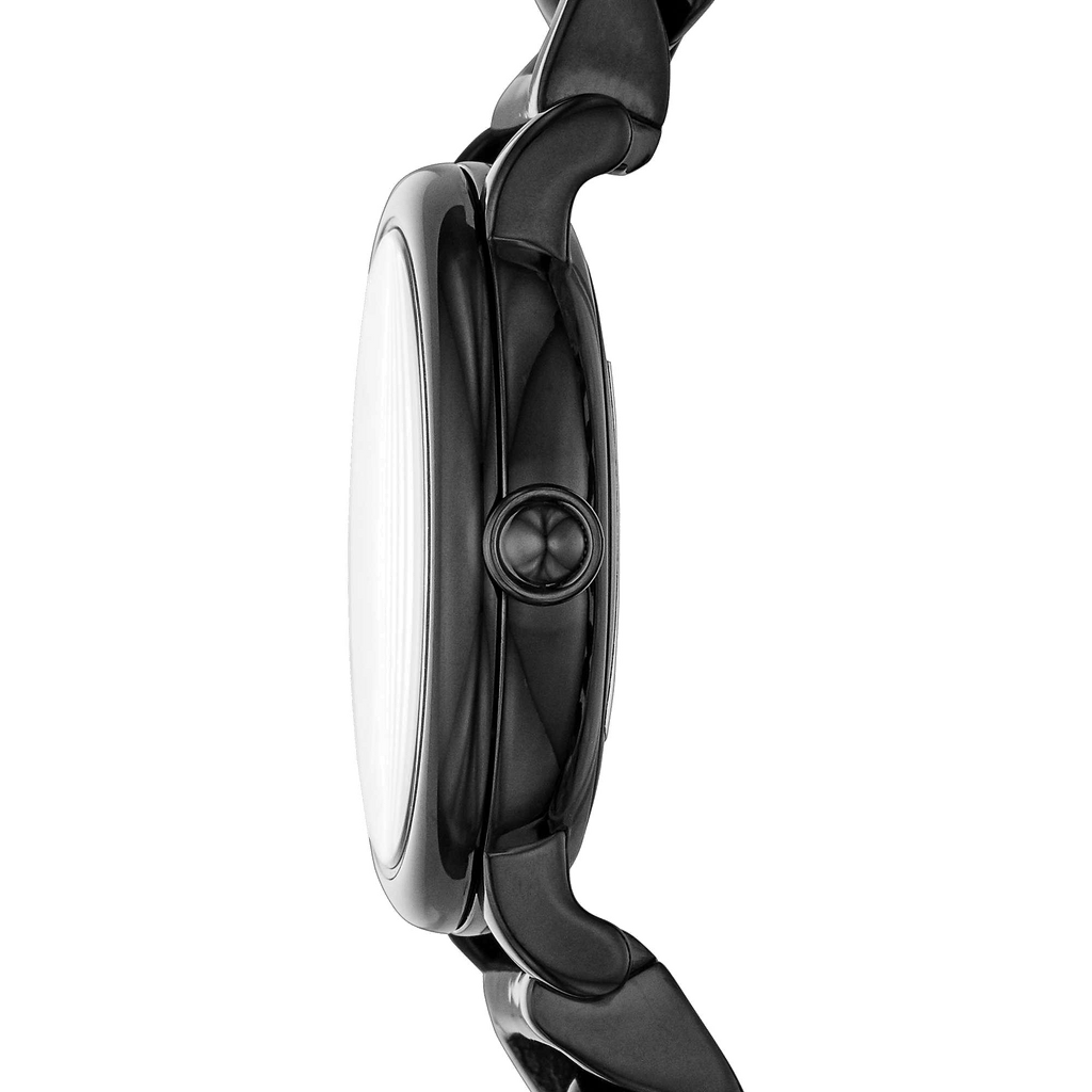 This Marc By Marc Jacobs Women's Watch MBM8673 has a black dial. It is small, but still has a sophisticated design. The timepiece has sparkling diamonds on the hour markers. The watch bracelet is made of stainless steel.