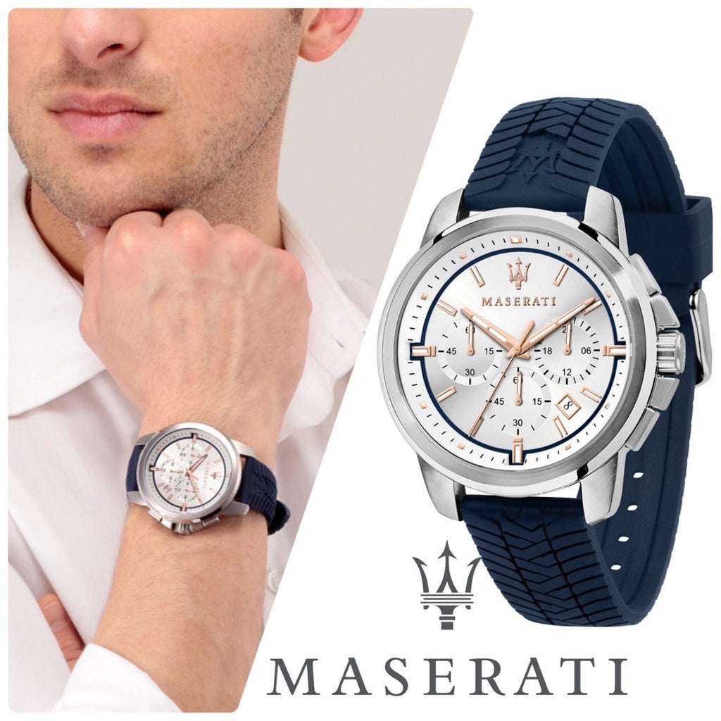 Maserati Successo Chronograph White Dial Blue Rubber Strap Watch For Men - R8871621013