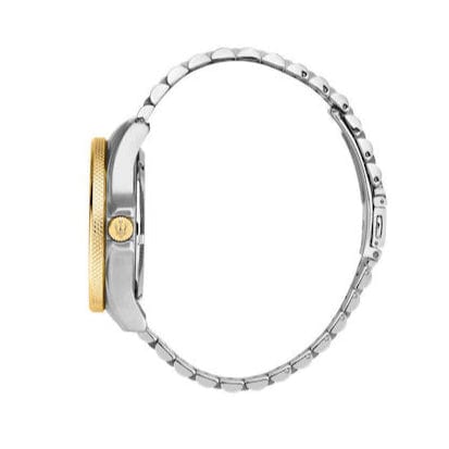 The Maserati Sfida Skeleton Automatic R8823140010 is an elegant men's watch that combines a luxurious design with a precise Japanese Miyota 8N24 automatic movement. The stainless steel envelope in silver-gold color and the transparent dial with black elements create a sophisticated effect that is sure to catch the eye. Hardened mineral glass, covered with a sapphire layer, protects the dial and enhances the skeleton's unique look. The watch has a water resistance rating of 100 meters, making it a suitable choice for both everyday wear and more formal styling.