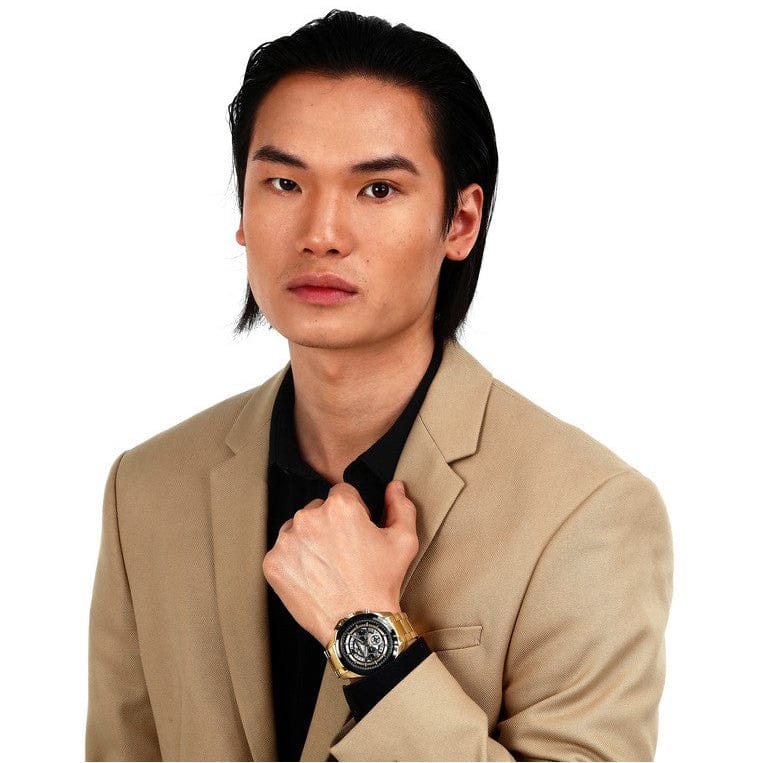 Maserati Traguardo Skeleton Black Dial Gold Steel Strap Watch For Men - R8873612058