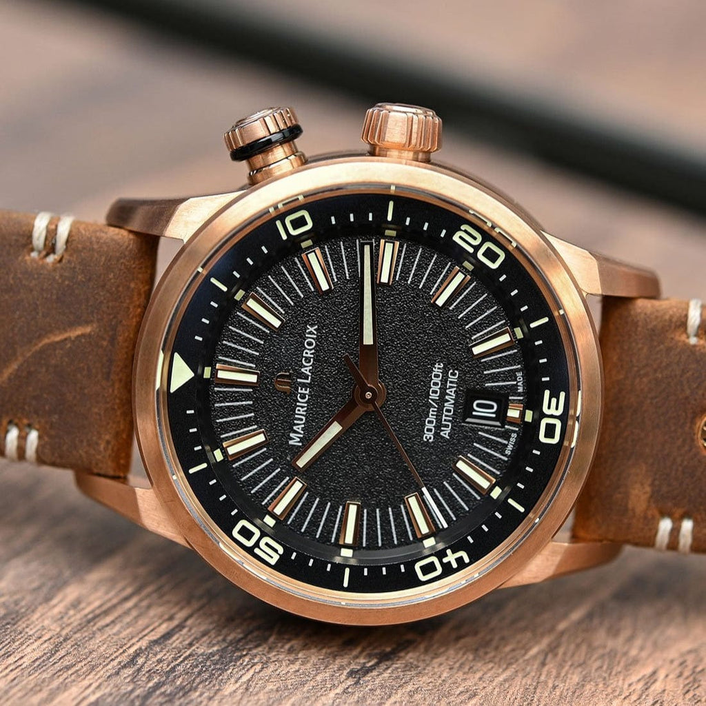 Maurice Lacroix Pontos S Diver Automatic Black Dial Brown Leather Strap Watch For Men - PT6248-BRZ01-330-2