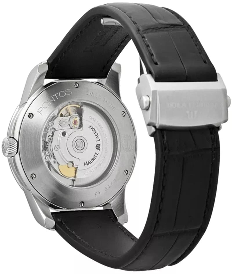 Maurice Lacroix Pontos Silver Dial Black Leather Strap Watch For Men - PT6148-SS001-131