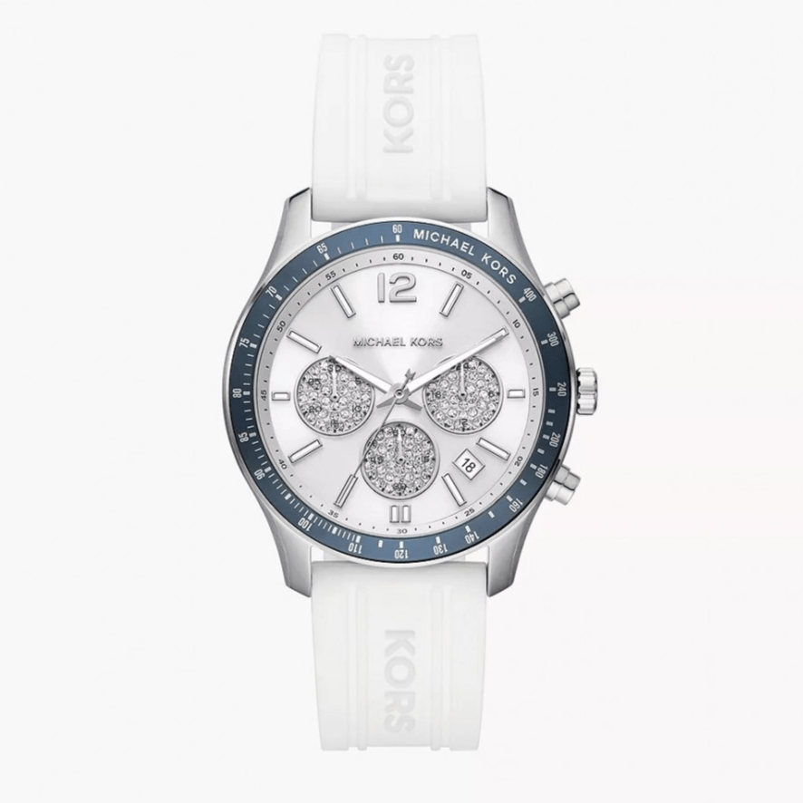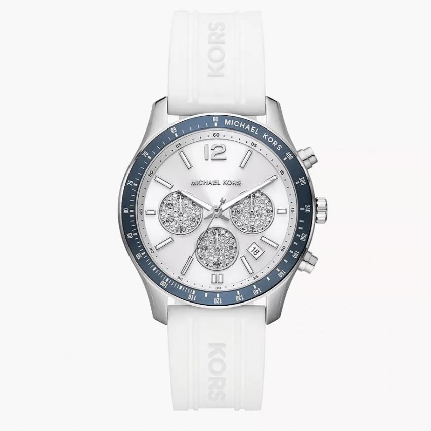Michael Kors Berkley Chronograph Silver Dial White Rubber Strap Watch For Women - MKO1040