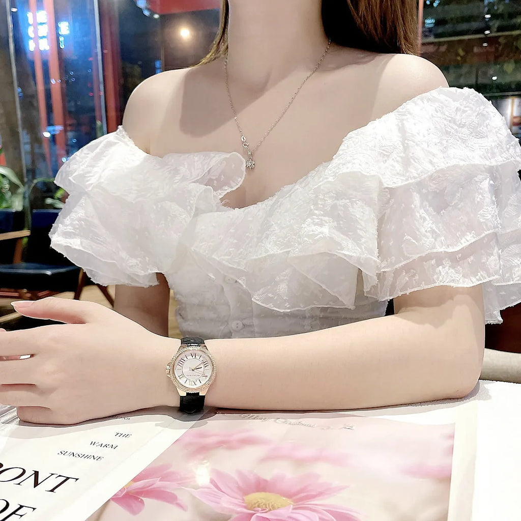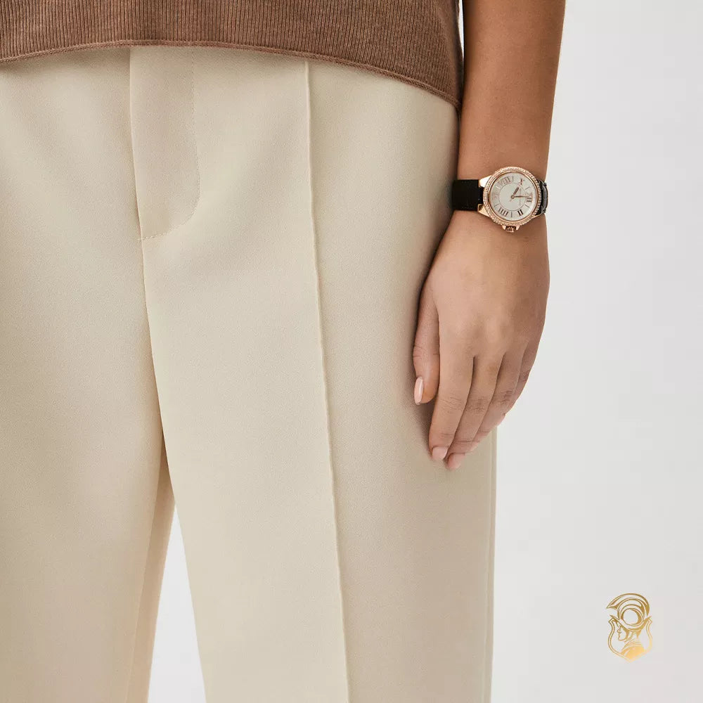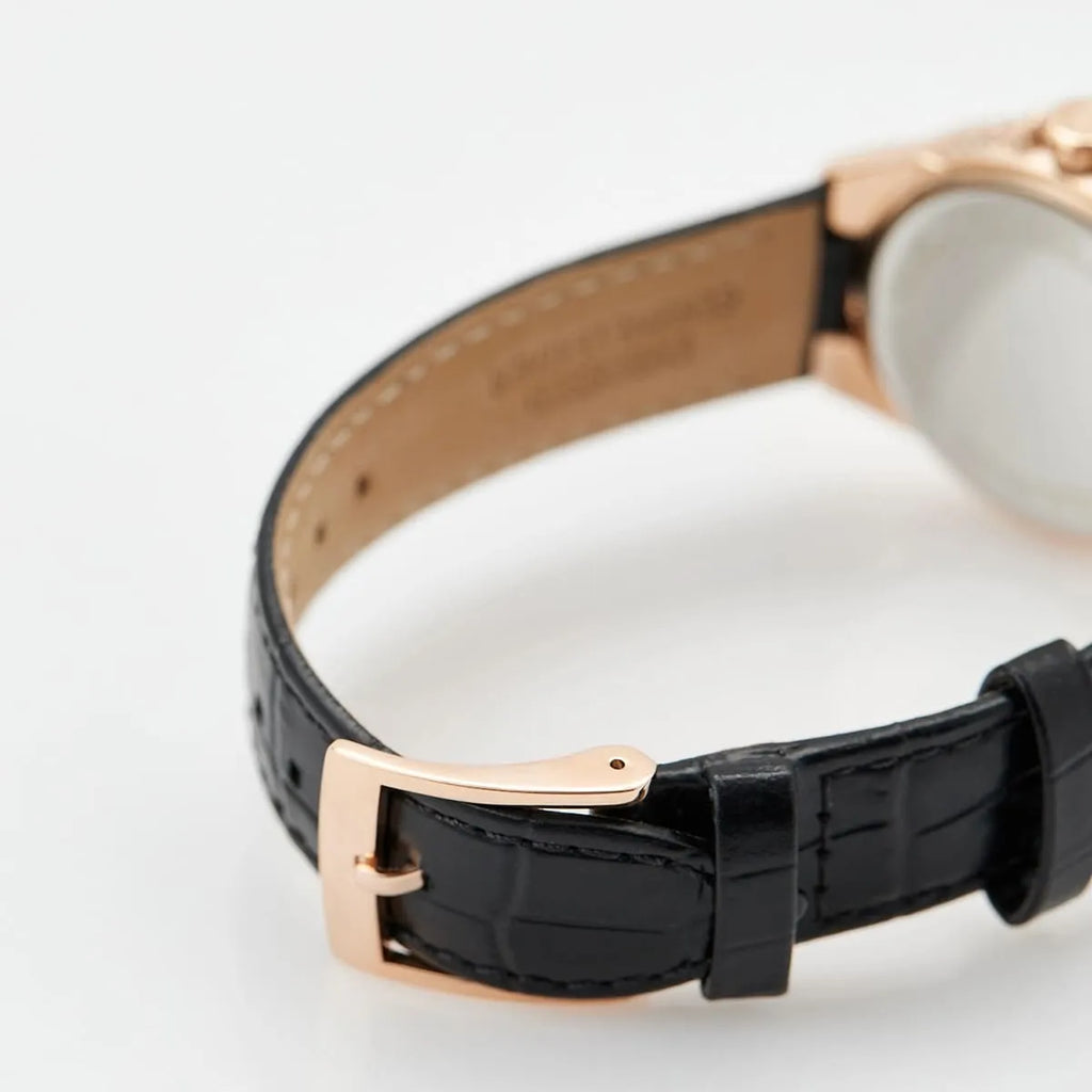 The Camille Leather Watch comes with a comfortable leather strap that is 18mm wide, making it suitable for both casual and formal occasions. The strap complements the rose gold case perfectly and is adjustable to fit a range of wrist sizes.