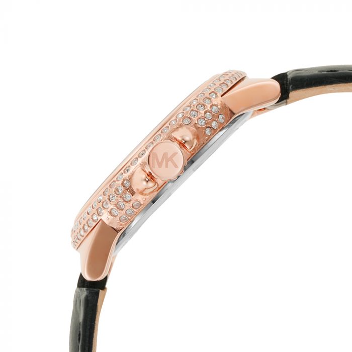 Michael Kors Camille Three-Hand Crystals White Dial Black Leather Strap Watch for Women - MK2962