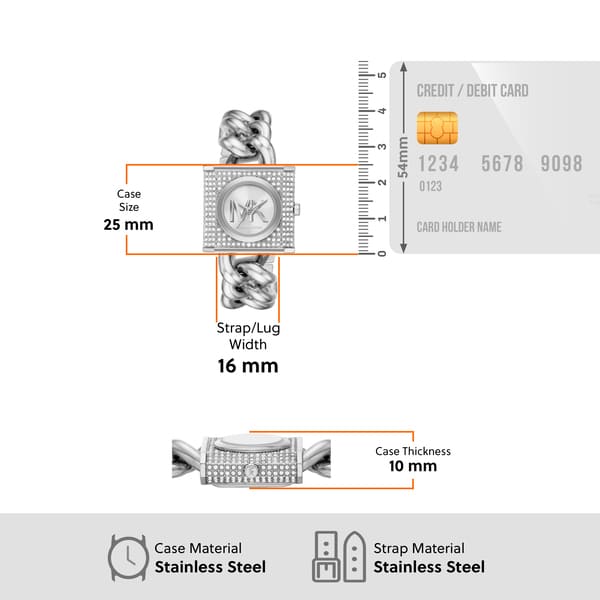 Elevate your daily style with the Michael Kors Lennox Silver-Tone Women's Watch. The refined silver-tone design exudes timeless elegance, while the intricate details of the watch showcase craftsmanship at its finest. With this watch, you can elevate any outfit and make a statement wherever you go.